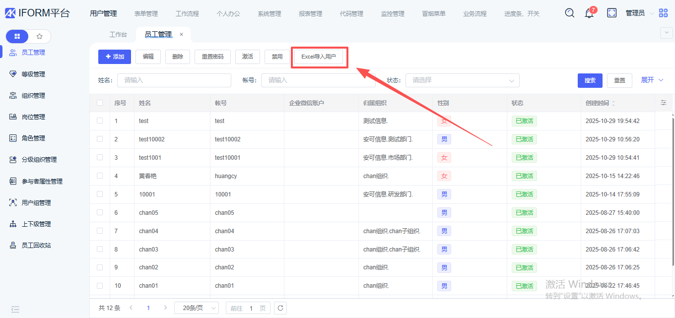 3、 Excel导入用户