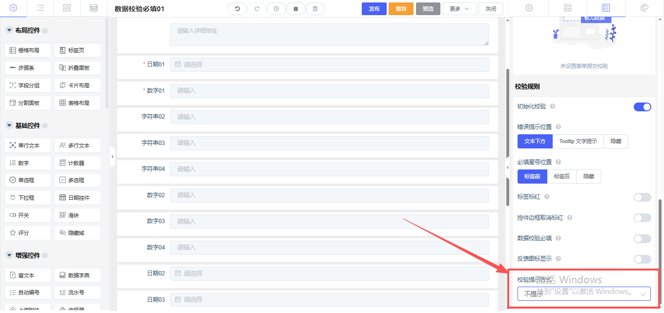 控件边框取消标红:【关闭】默认是显示控件必填边框标红,【开启】控件必填的情况下不标红