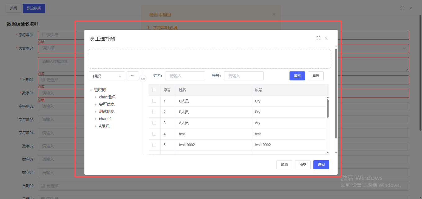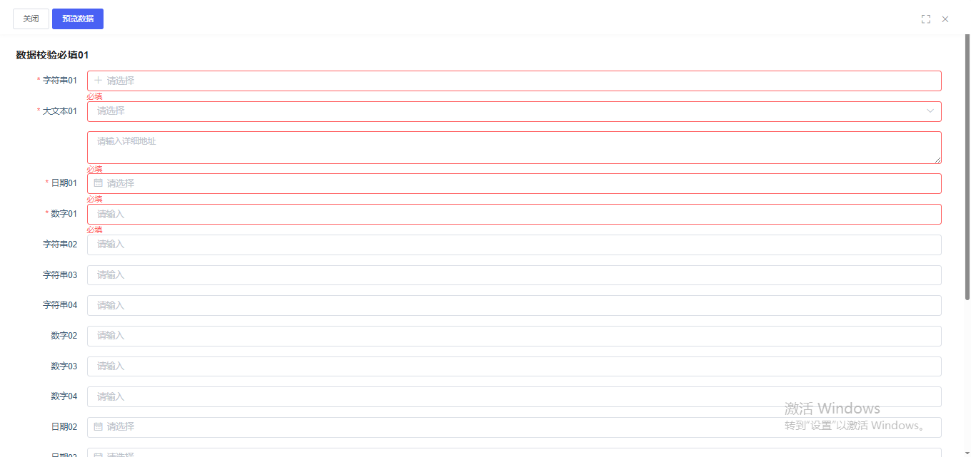 (2)不开启【是否聚焦第一个错误】时,进行数据校验时,不会定位到第一个错误的位置